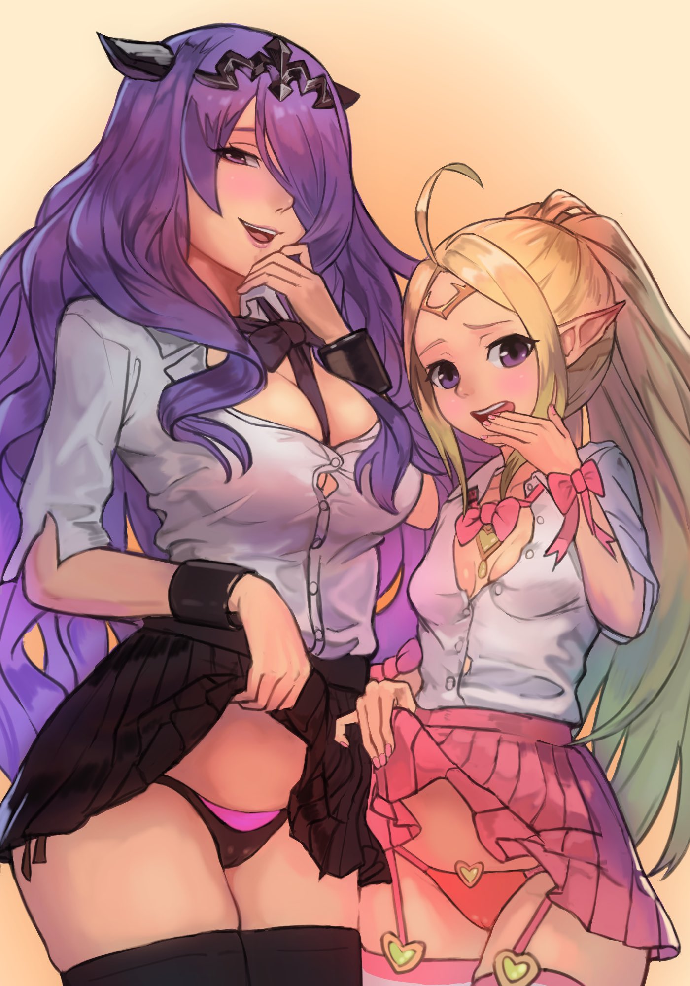 Tags: 2girlsahogealternate costumeblack bowblack bowtieblack pantiesblack skirtblack thighhighsblonde hairbowbowtiebraceletbreastsbroochbutton gapcameltoecamilla (fire emblem)circletcleavageclothes liftcollared shirtcommentarycontemporarycovering mouthcowboy shotfemalefemale onlyfingernailsfire emblemfire emblem fatesfire emblem: awakeninggarter strapsgyaruhair over one eyehand over own mouthheart broochheight differencehighresimageboardjewelrylifted by selflipslong hairmedium breastsmultiple girlsnail polishnintendonowi (fire emblem)open mouthpantiespartially unbuttonedpink bowpink bowtiepink nailspink pantiespink skirtpink thighhighspleated skirtpointy earsponytailpurple eyespurple hairr123Rule34school uniformshirtsidelockssimple backgroundskirtskirt liftsmall breaststhighhighstiaraunderwearvery long hairwavy hairwhite shirt