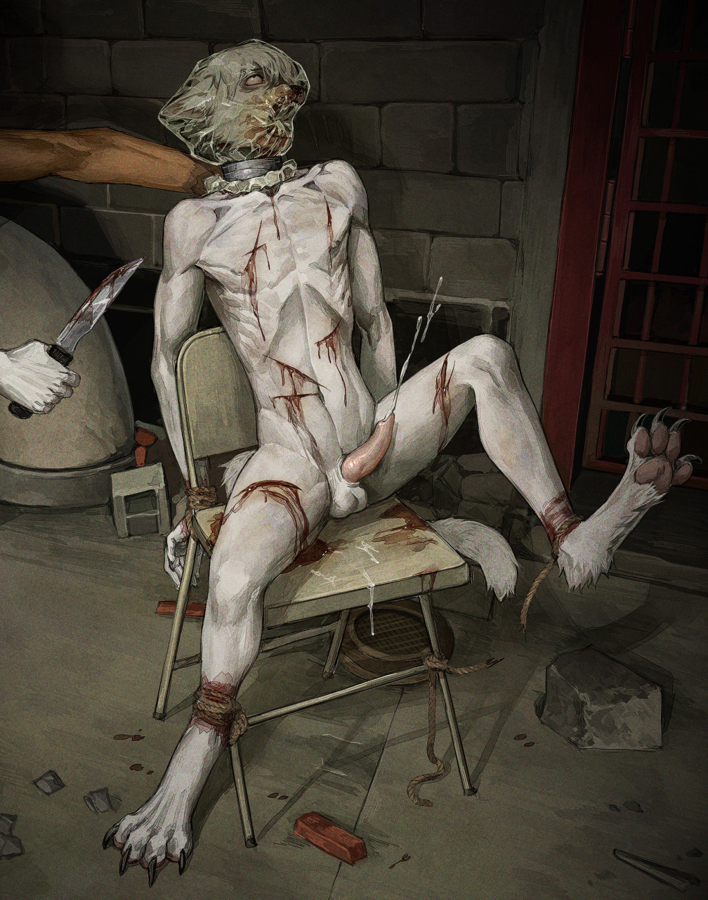 Tags: anthroasphyxiationbloodbodily fluidsbondageboundcanidcaninechairchair bondageclawscumdeathdeath erectiondetailed backgroundduoerotic asphyxiationfrank-79furfurnituregenital fluidsgorehi resimageboardknifemalemammaloffscreen characterpawpadsRule34snufftoe clawswhite bodywhite furwounded