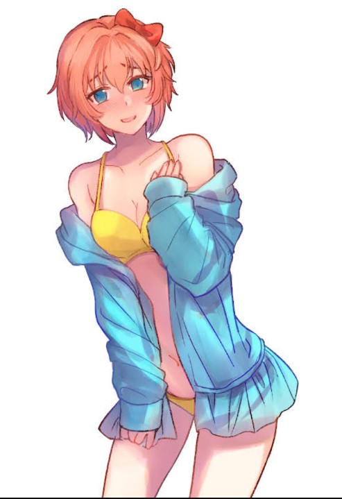 Tags: bare legsbare midriffbare shouldersbare thighsbelly buttonbikinibikini bottombikini topbikini under clothesblue eyesblue jacketblushblush linescleavagedoki doki literature clubhair ribbonhairbowimageboardjacketmidriffnavelpink hairred hair bowred hair ribbonRule34sayori (doki doki literature club)short hairyellow bikiniyellow bikini bottomyellow bikini top
