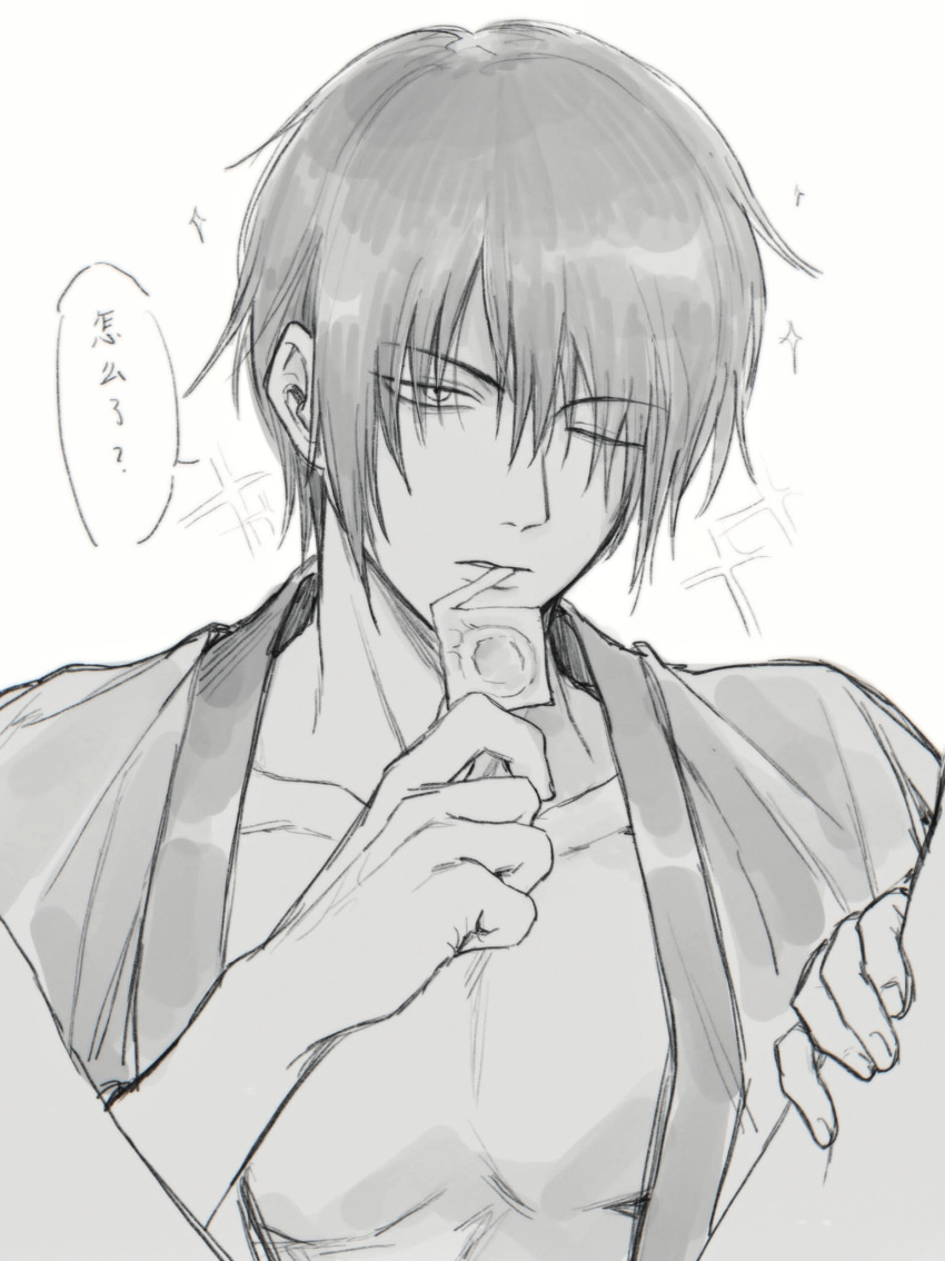Tags: condomcondom in mouthcondom wrappergintamaimageboardimminent sexkimonollemonyyyylooking at viewermalemale focusmale onlymonochromeone eye closedpovRule34solo focusspread legstakasugi shinsuke