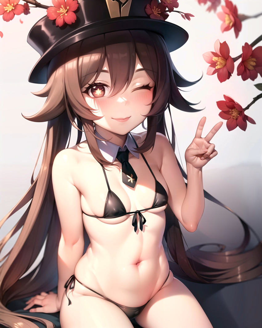 Tags: ai generatedbangsbare armsbare shouldersbikiniblack bikiniblack headwearblushbreastsbrown eyesbrown haircollarbonedetached collarfemaleflowerflower-shaped pupilsfront-tie bikini topfront-tie tophair between eyeshand uphathat flowerhu tao (genshin impact)imageboardlong hairlooking at viewermicro bikininavelnecktieone eye closedplum blossomsred eyesred flowerRule34short necktieside-tie bikini bottomsittingsmall breastssmilesolostable diffusionstlow7stomachstring bikiniswimsuitsymbol-shaped pupilsthighstop hattwintailsvvery long hair