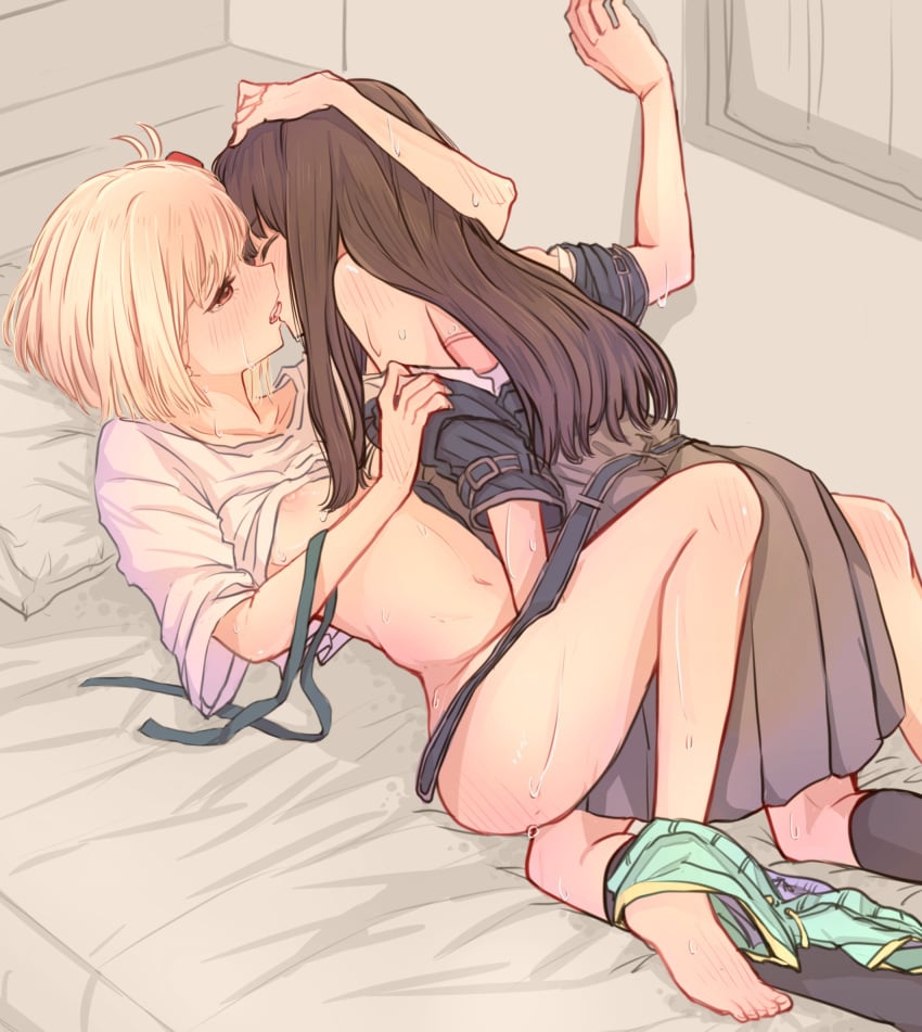 Tags: 2futas2girlsbedblack hairblonde hairbreastsclosed eyesclothedclothingfemalefutaba (rei-futaba)highreshumanimageboardimplied fingeringindoorsinoue takinalight skinlight-skinned femalelycoris recoilmostly clothedmultiple girlsnavelnipplesnishikigi chisatoon bedpanties around one anklepillowRule34small breastsundressing anotheryuri