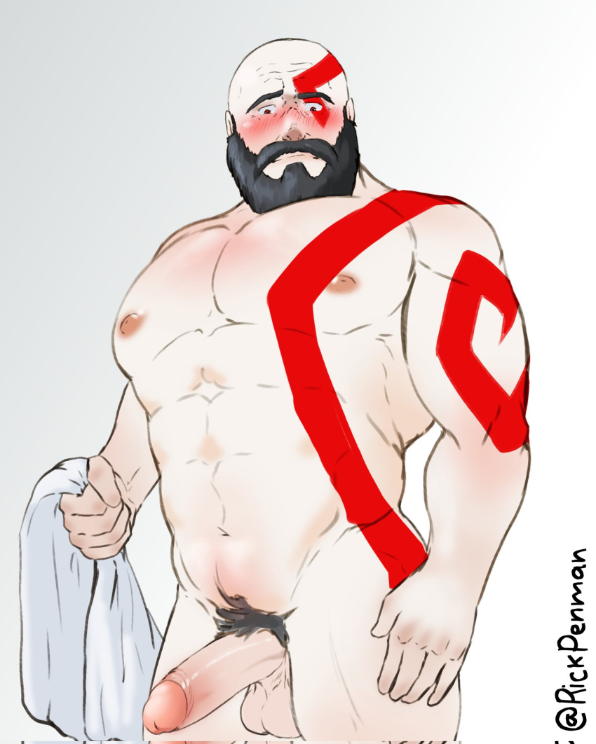 Tags: ballsbarabeardblushbody markingsbonererectionfacial hairgaygod of wargrey skinimageboardkratosmalemale onlymusclesmuscularpenisrickpenmanRule34solosolo maletattoo